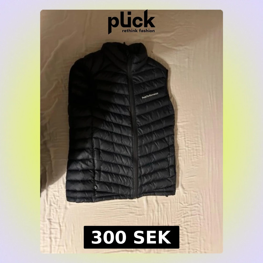 Snygg svart dunväst från Peak Performance med diskret logga på bröstet. Västen har dragkedja framtill, ståkrage och två sidofickor med dragkedja. Quiltad design med horisontella sömmar och lätt vaddering för extra värme.
