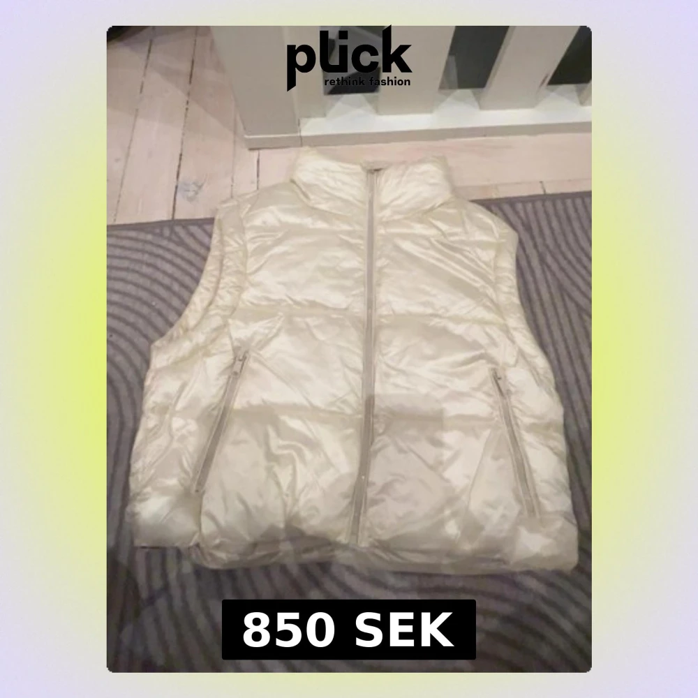 Stilren krämvit dunväst från Softy med hög krage och två dragkedjeförsedda fickor. Västen har en glansig finish och stängs med dragkedja framtill. Perfekt för lager-på-lager och ger en clean look till din outfit.