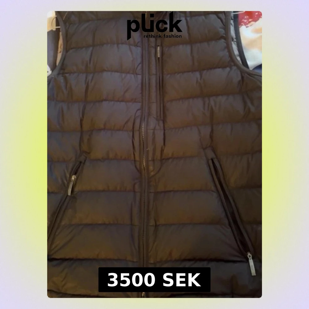 Säljer en svart dunväst med quiltad design och två snedställda fickor med dragkedja. Västen har hög krage och stängs med dragkedja framtill. Perfekt för lager-på-lager och riktigt skön att bära under kyliga dagar.