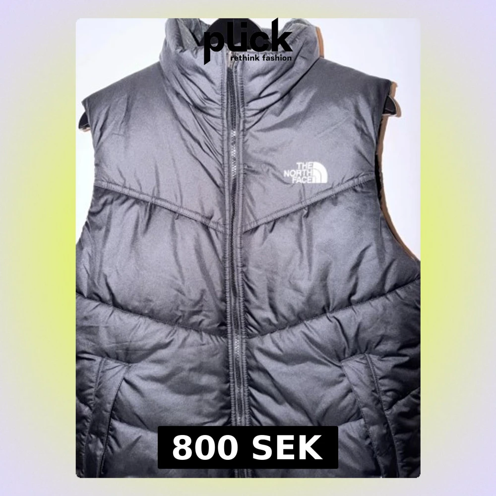 Snygg svart dunväst från The North Face med hög krage och dragkedja framtill. Västen har två fickor på sidorna och logga på både bröstet och ryggen. Perfekt för lager-på-lager och håller dig varm under kyliga dagar. Lite bredare form