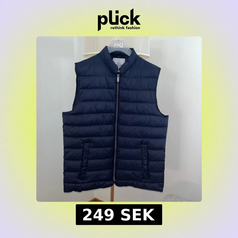 Snygg mörkblå dunväst från Bläck i storlek XL. Västen har quiltad design, hög krage och två fickor framtill. Stängs med en robust dragkedja. Perfekt för lager-på-lager och enkel att matcha med olika outfits.
