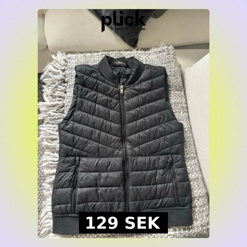 Snygg svart dunväst med quiltat mönster och hel dragkedja framtill. Västen har två fickor med dragkedja och ribbade detaljer vid krage och nederkant. Perfekt för lager på lager och en clean streetstyle-look.