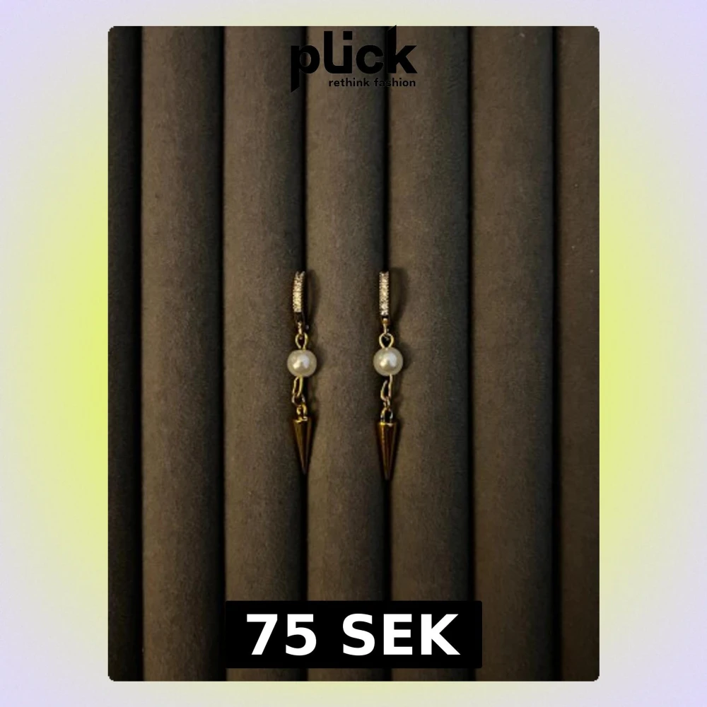 Snygga örhängen i guldfärg med små vita pärlor och hängande konformade detaljer. Örhängena har en tunn ring upptill och en cool, modern design som sticker ut. Perfekta för dig som gillar trendiga accessoarer med en twist.