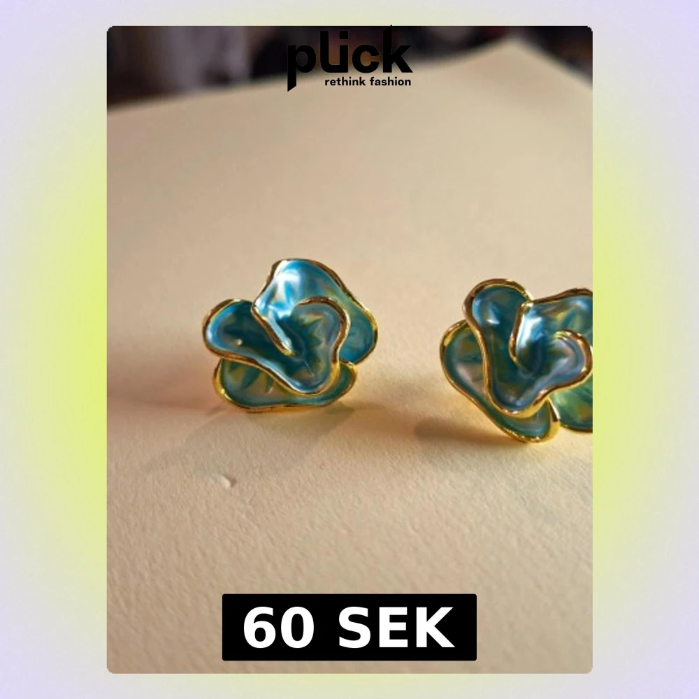 Blå blomformade örhängen med guldkant
