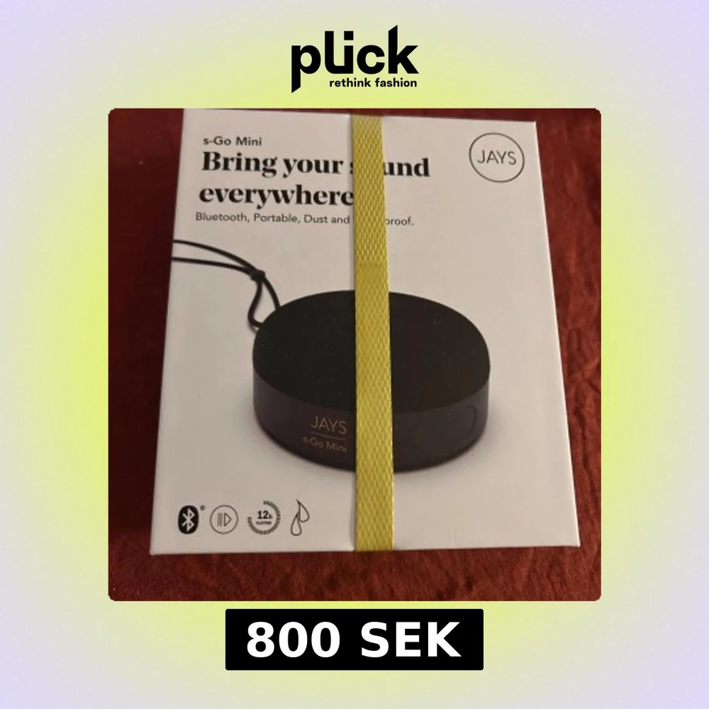 JAYS s-Go Mini är en portabel Bluetooth-högtalare med 12 timmars batteritid, vattentålig och dammsäker design. Den är liten, lätt att ta med och kan länkas med en annan högtalare för stereoljud. Levereras med skyddspåse och laddningskabel. Produkten är ny i förpackning.