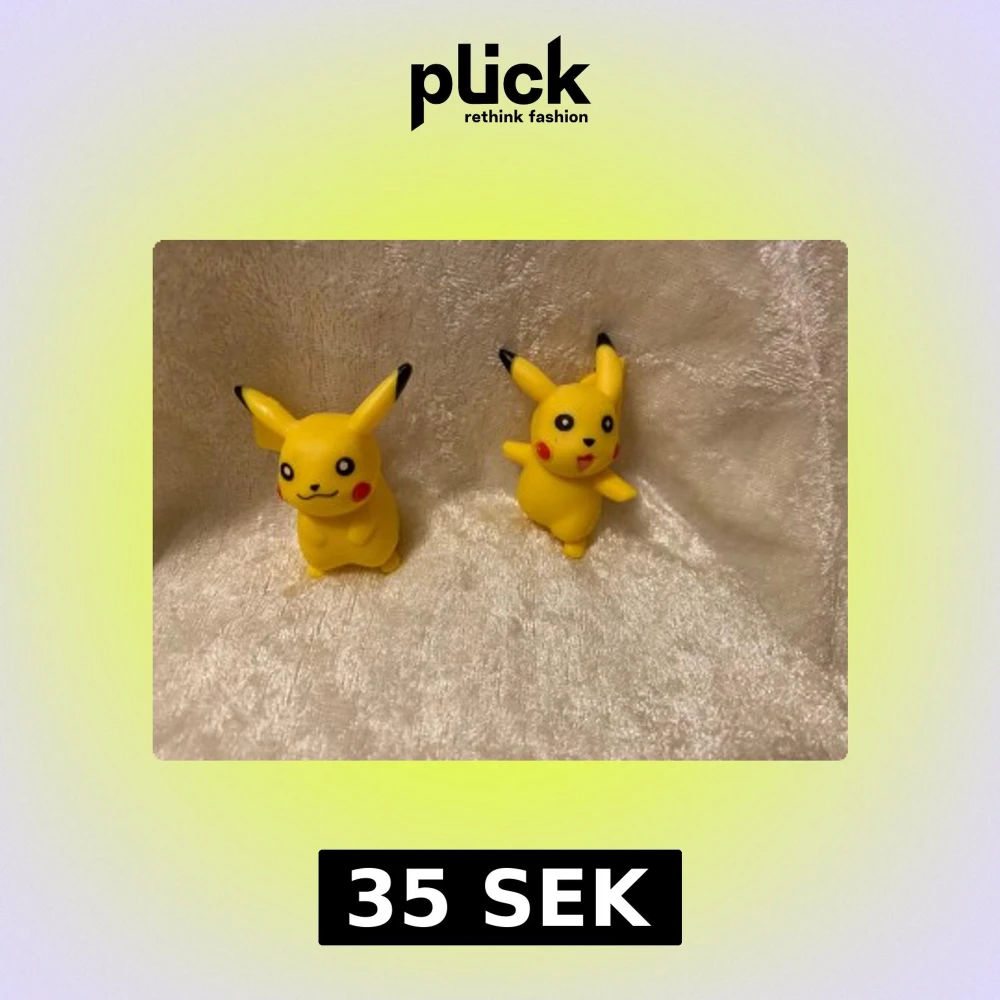 Två små Pikachu-figurer i plast, perfekta för samlare eller som dekoration. Figurerna är i gott skick med tydliga färger och detaljer, inga synliga skador eller slitage. Passar utmärkt till Pokémon-entusiaster och barnrum. 35kr/2st/bild mått ca 5.50*5.00 cm/st