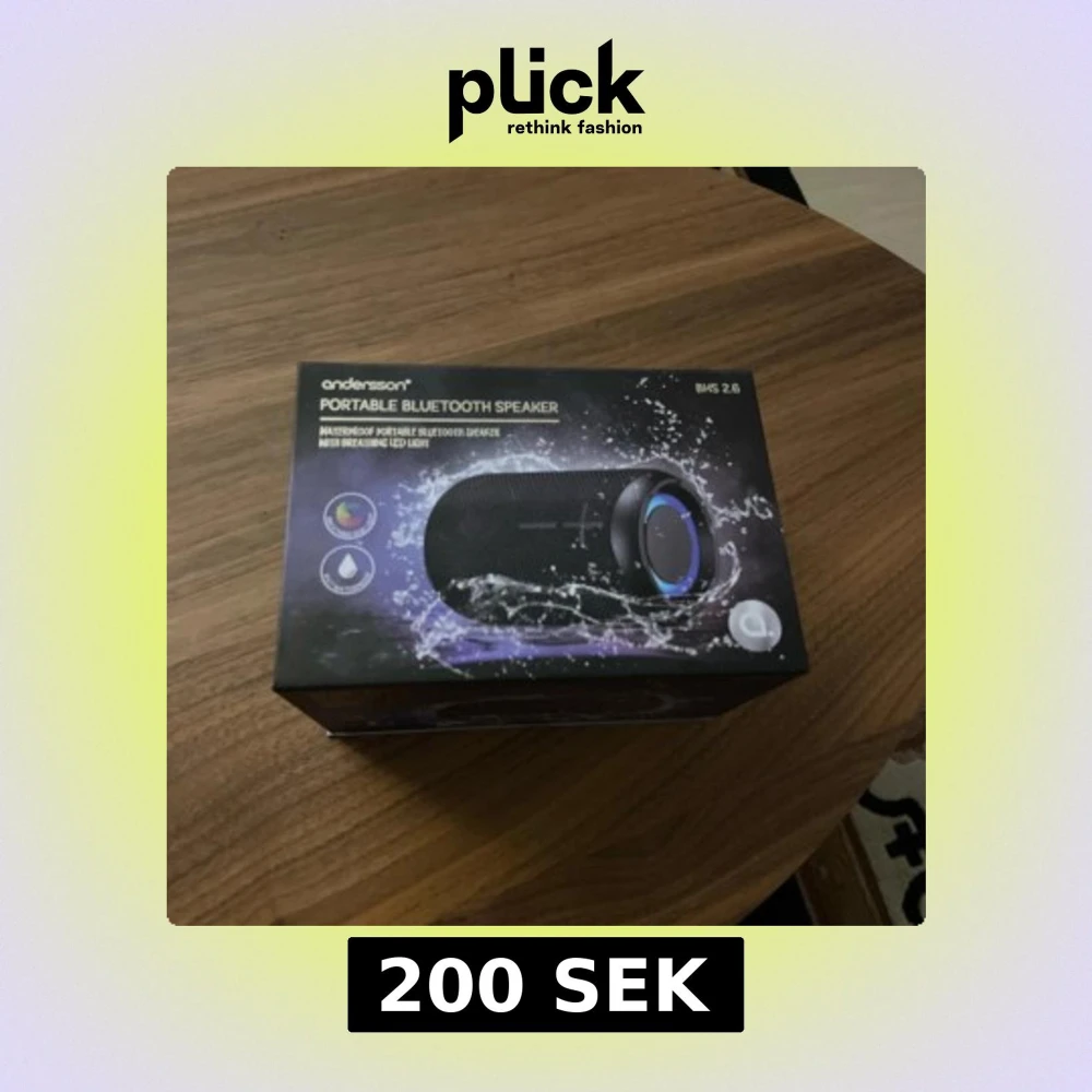 Vattentät portabel Bluetooth-högtalare med andnings LED-ljus. Kompakt design, perfekt för utomhusbruk. Levereras i originalförpackning och är i nyskick utan synligt slitage eller defekter. Enkel att ta med tack vare praktisk rem.