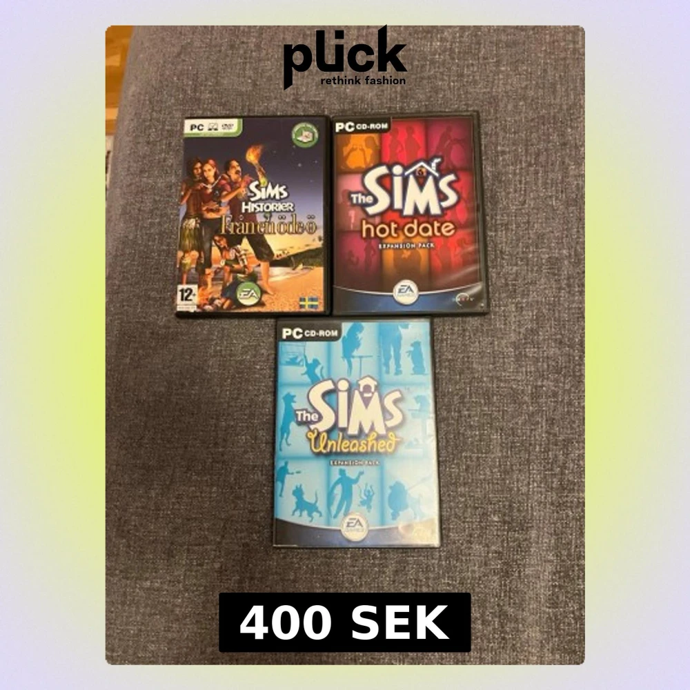 Samling av tre klassiska The Sims PC-spel: Unleashed (expansion med husdjur), Hot Date (dejting-expansion) och Historier Från en öde ö (äventyr på en öde ö). Skivor och fodral i gott skick, svenska texter. Perfekt för samlare eller nostalgiker!