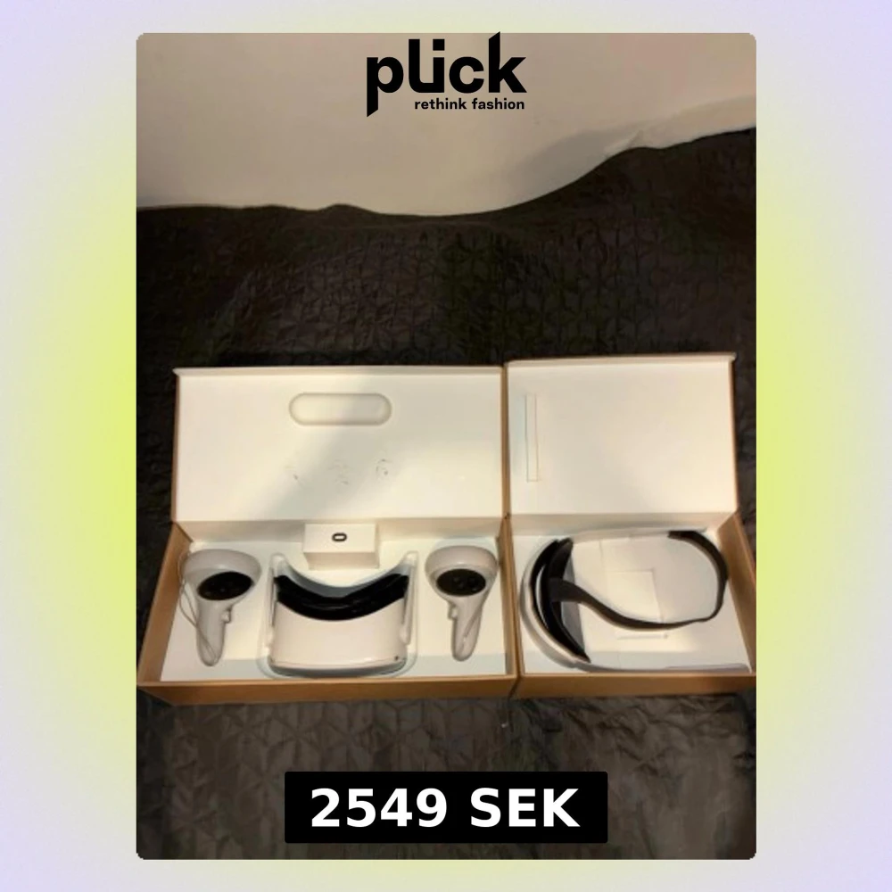 Meta Quest 2 VR-headset med två handkontroller. Säljes i originalförpackning. Headsetet och linserna ser ut att vara i mycket gott skick utan synligt slitage. Perfekt för VR-spel och upplevelser, trådlös och enkel att använda. Bra skick, jag har köpt till ett elite strap och ny skumgrej mer ljusblockerare runt ögonen. Finns att hämta i UPPSALA. Skicka mer än gärna ett meddelande vid fundering.