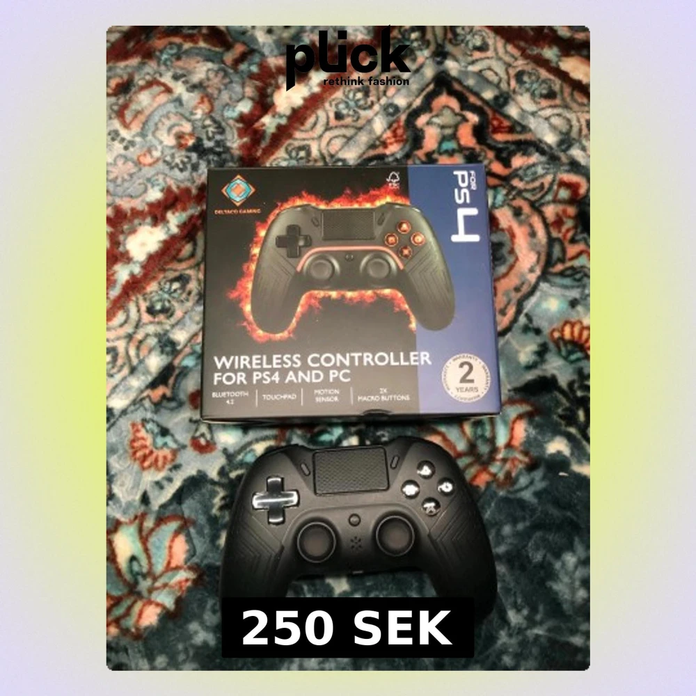 Trådlös handkontroll kompatibel med PS4 och PC. Utrustad med Bluetooth 4.2, touchpad, rörelsesensor och 2 programmerbara makroknappar. Ergonomisk design och modern look. Produkten ser ut att vara i mycket gott skick utan synligt slitage.