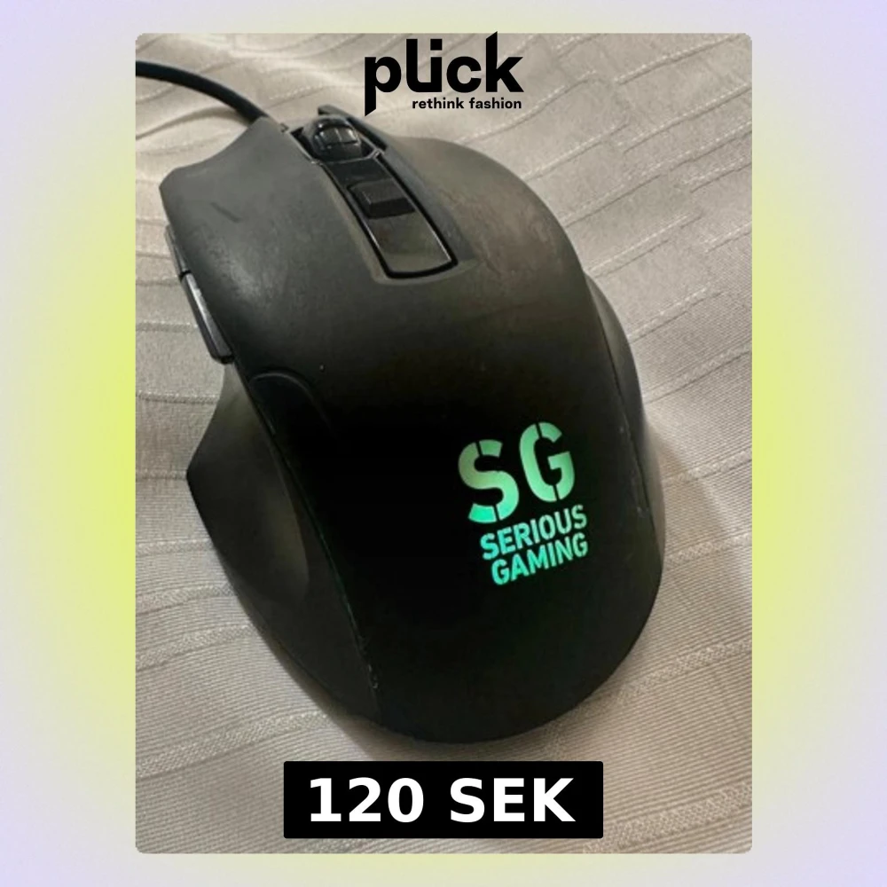 Ergonomisk gamingmus från Serious Gaming med USB-anslutning. Utrustad med flera programmerbara knappar och belyst SG-logotyp. Passar perfekt för spelentusiaster. Viss yttre slitage syns, men fungerar som den ska.