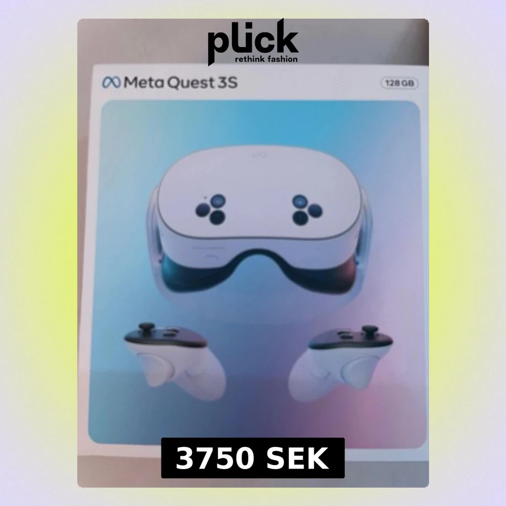 Meta Quest 3S VR-headset med 128GB lagring. Komplett med två handkontroller. Enheten ser ut att vara i mycket gott skick utan synligt slitage. Perfekt för uppslukande VR-upplevelser och spel.