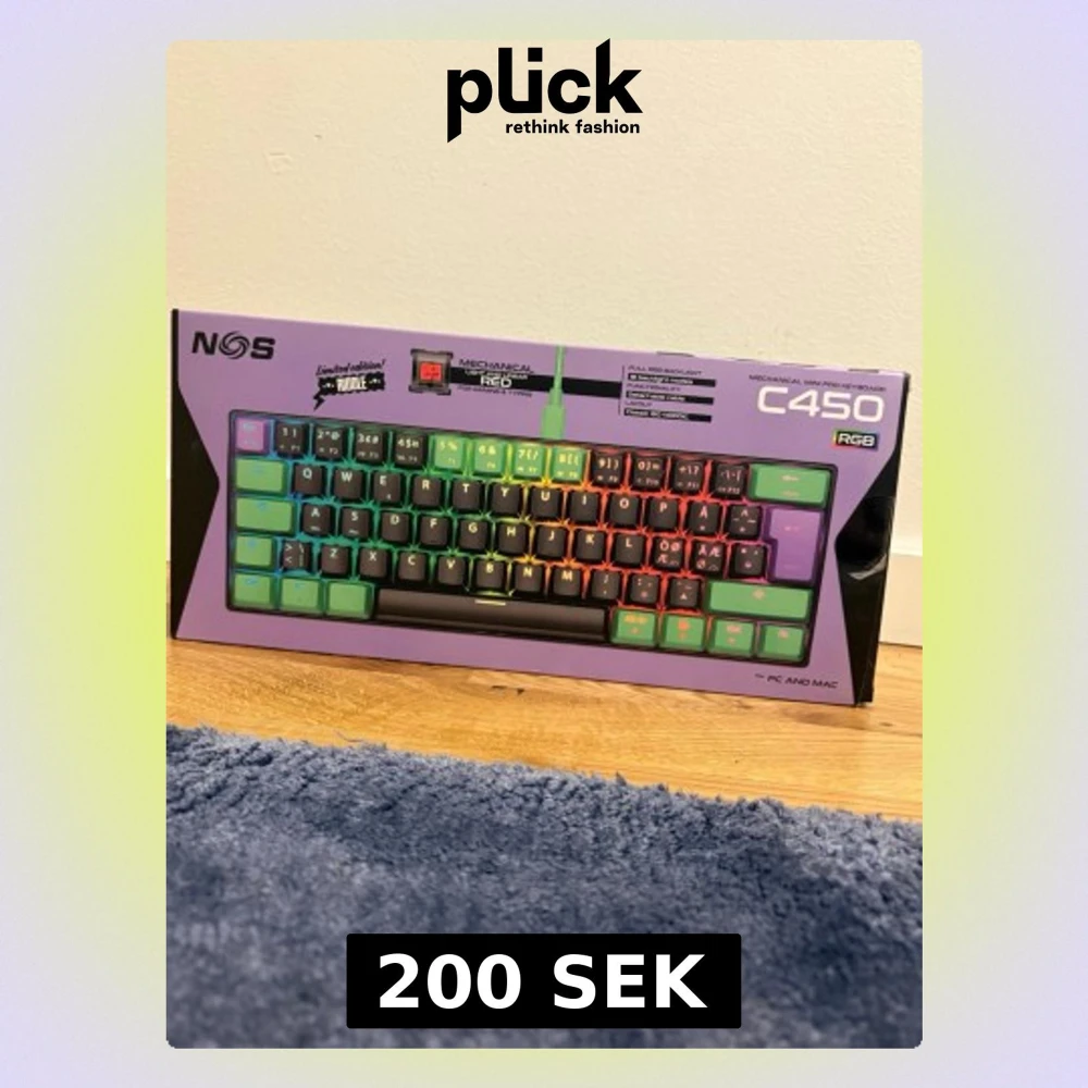 NOS C450 RGB är ett mekaniskt mini pro-tangentbord med röda brytare, full RGB-bakgrundsbelysning och avtagbar kabel. Nordisk layout, kompakt design och flera belysningslägen. Perfekt för gaming och skrivande. Produkten ser ut att vara i nyskick i originalförpackning.