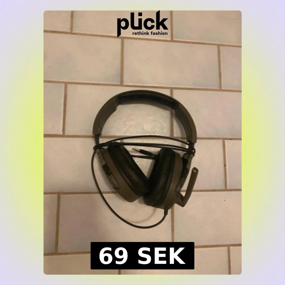 Säljer ett svart over-ear gamingheadset med kabel och inbyggd mikrofon. Hörlurarna har mjuka öronkuddar och justerbart huvudband för skön passform. Perfekt för gaming eller videosamtal, ansluts via 3,5mm-kontakt.