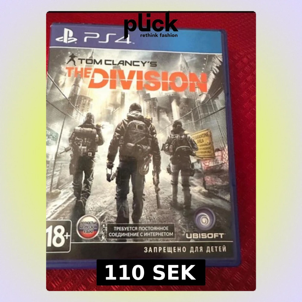 Tom Clancy's The Division till PS4. Komplett med fodral, skiva och Season Pass-inlägg. Skivan ser ut att vara i gott skick utan synliga repor. Ett actionfyllt onlinespel i öppen värld. Rysk version, 18+.