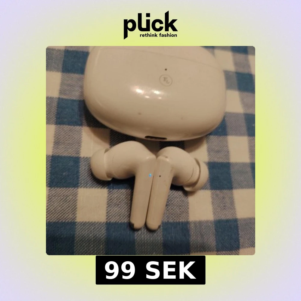 Vita trådlösa hörlurar med sjukt bra bas för pengarna samt tillhörande laddningsetui, USB-C-kabel för laddning och helt nya plastkuddar för en fräsch lyssnarupplevelse. Finns ett litet märke på dockan annars i utmärkt skick. Perfekt för dig som söker prisvärda hörlurar för vardagsbruk.