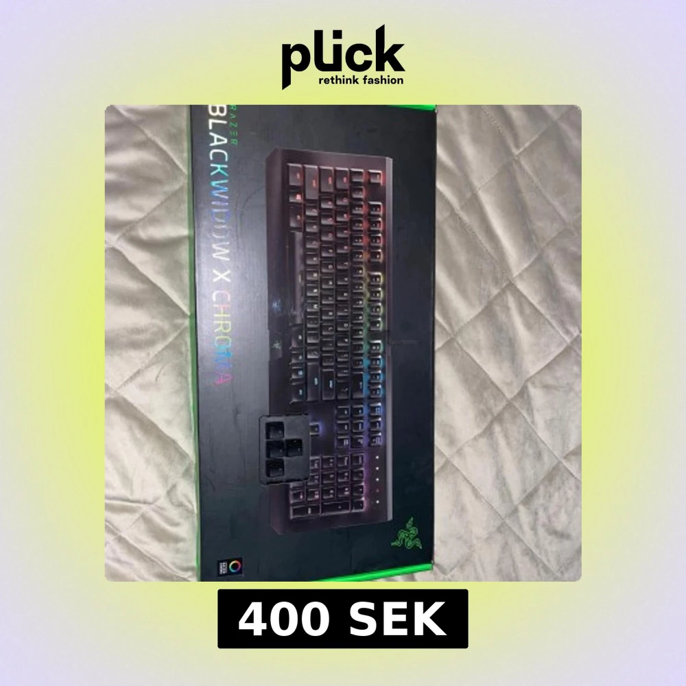 Razer BlackWidow X Chroma mekaniskt tangentbord med RGB-belysning. Kommer i originalförpackning och ser ut att vara i mycket gott skick. Perfekt för gaming med responsiva tangenter och robust design. Inga synliga defekter eller slitage på bilderna.