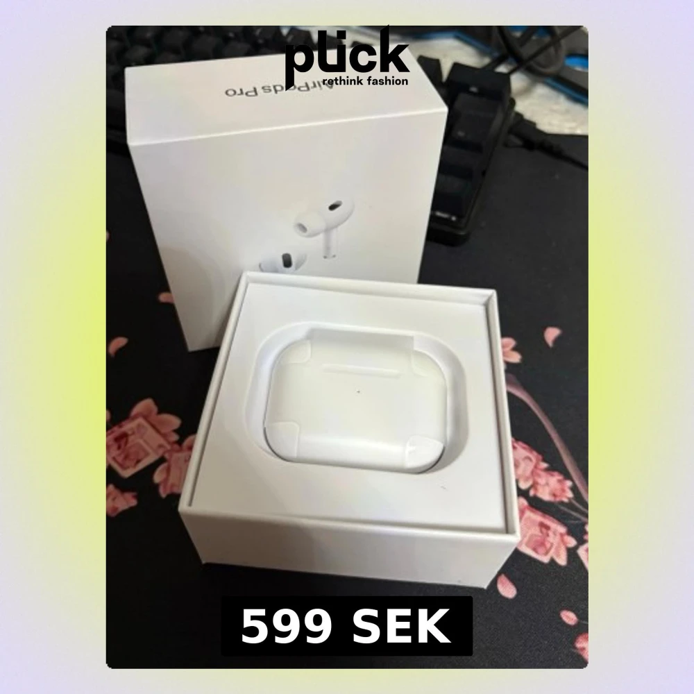 Säljer ett par Apple AirPods 2 Pro i mycket fint skick, komplett med originalförpackning, laddningskabel och extra öronproppar. Trådlös laddning, aktiv brusreducering och hög ljudkvalitet. Perfekt för både musik och samtal. Inga synliga repor eller skador.