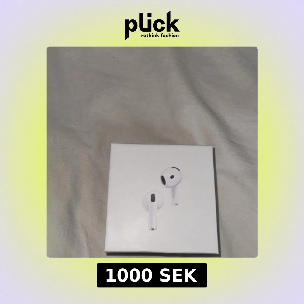 Nya Apple AirPods 4 med aktiv brusreducering. Trådlösa hörlurar med laddningsetui, kompatibla med USB-C, Apple Watch och Qi-laddare. Förpackningen ser ut att vara i gott skick utan synligt slitage eller skador.