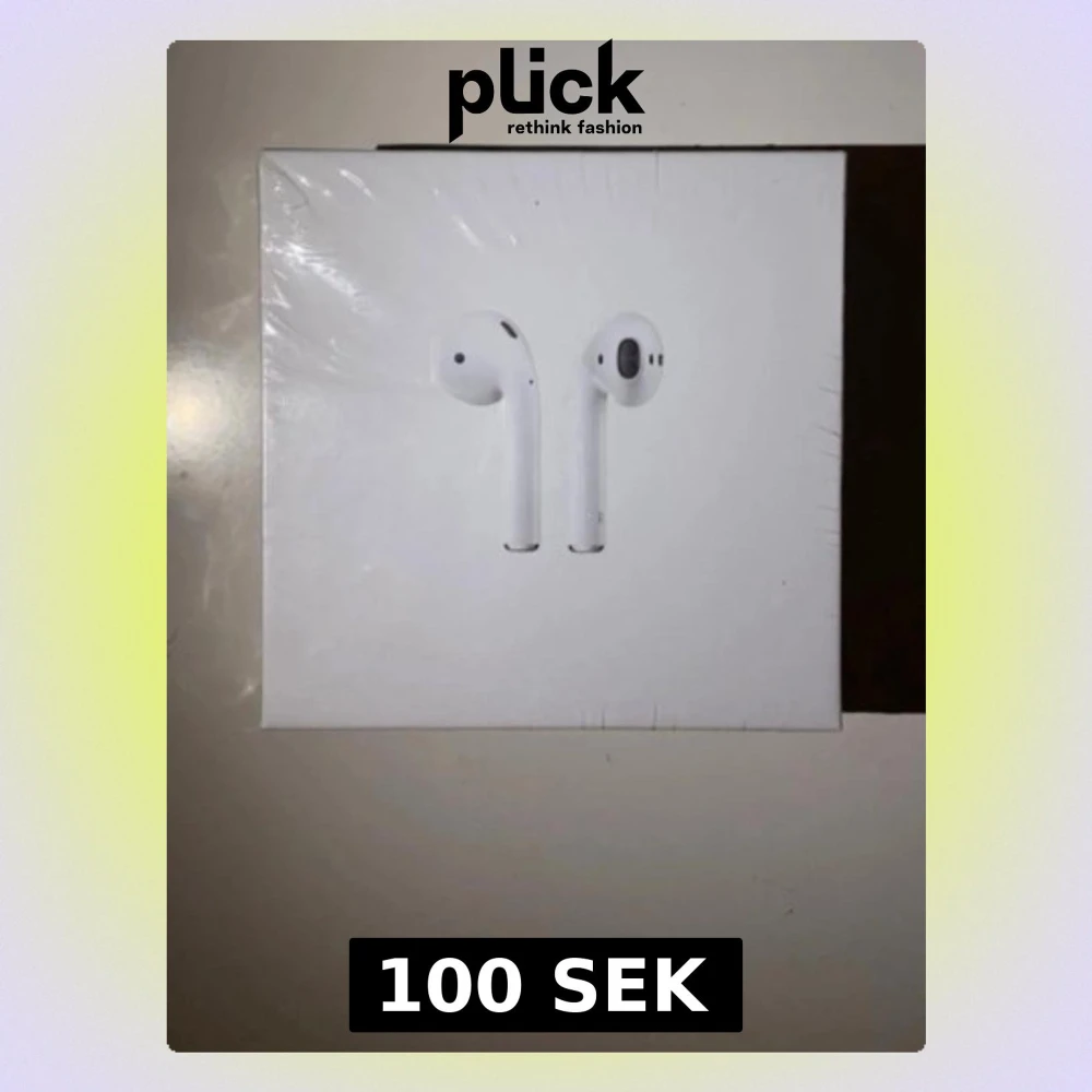 Säljer ett par vita Apple AirPods med trådlöst laddningsetui. De har en stilren och minimalistisk design i blank plast och passar perfekt till dig som vill ha smidiga och trådlösa hörlurar till mobilen eller datorn. Laddningsetuiet gör det enkelt att ladda hörlurarna på språng . Obs dessa är 1:1 airpods och jag har inte öppnat eller testat dem så skicket kan variera så köp av egen risk.