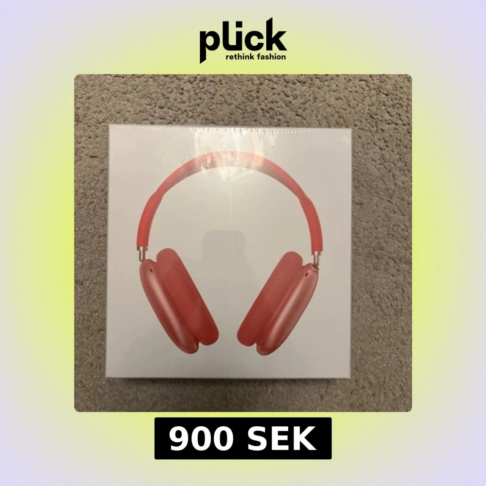 Apple AirPods Max i röd färg, trådlösa over-ear hörlurar med aktiv brusreducering och hög ljudkvalitet. Produkten är i originalförpackning och ser ut att vara i nyskick utan synliga defekter eller slitage.
