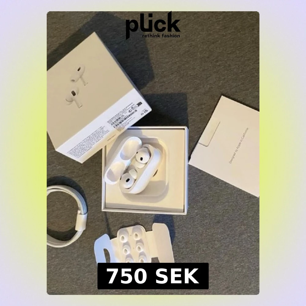 Säljer ett par Apple AirPods Pro i mycket fint skick, komplett med originalkartong, laddningskabel, extra öronproppar och manualer. Hörlurarna är trådlösa och erbjuder aktiv brusreducering samt hög ljudkvalitet. Inga synliga defekter eller slitage.