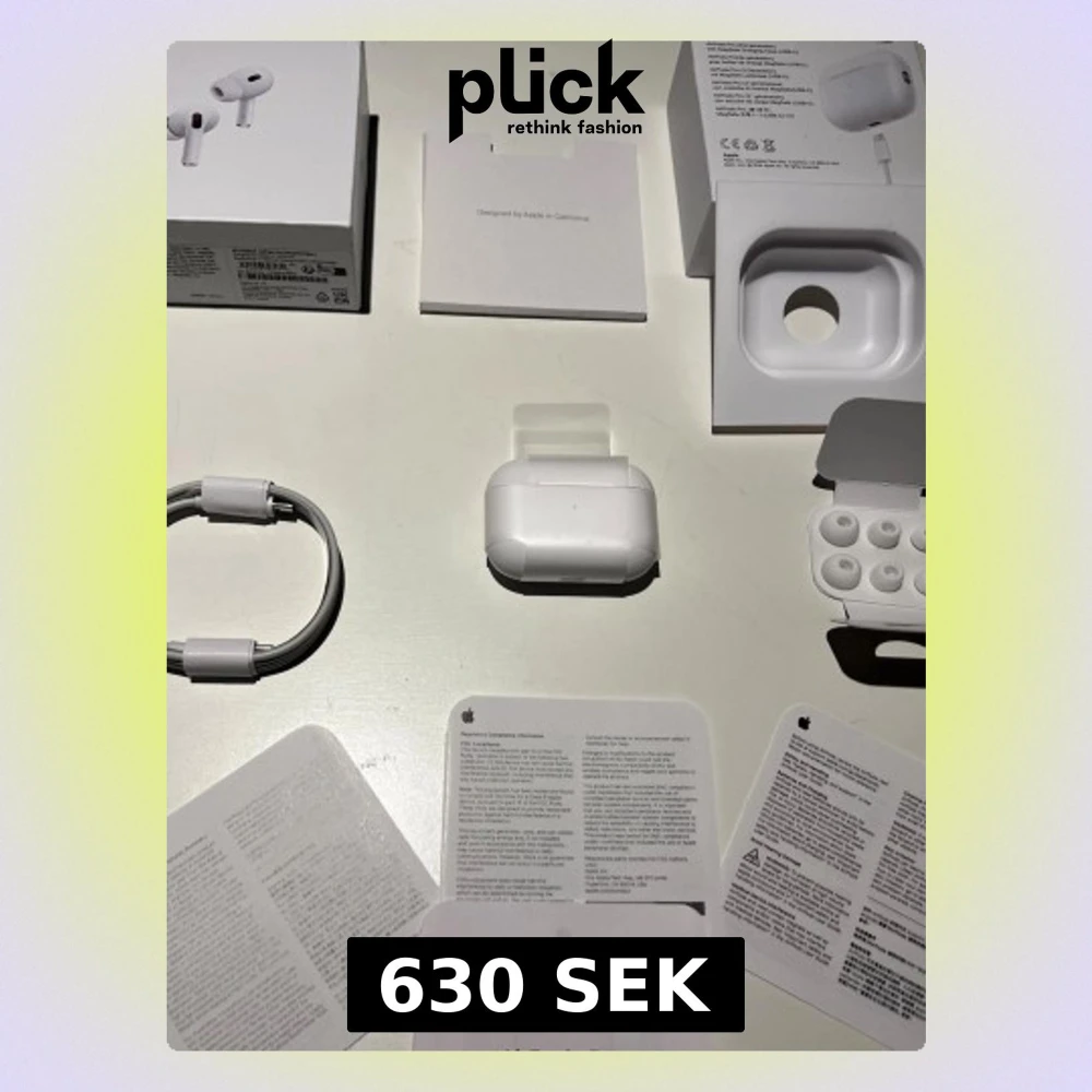 Säljer ett par AirPods Pro i mycket fint skick. Komplett med originalkartong, laddningskabel, extra öronproppar i olika storlekar. Perfekt för dig som vill ha trådlösa hörlurar med aktiv brusreducering och hög ljudkvalitet. Gör en bundle med två för 1000kr och spara 260kr