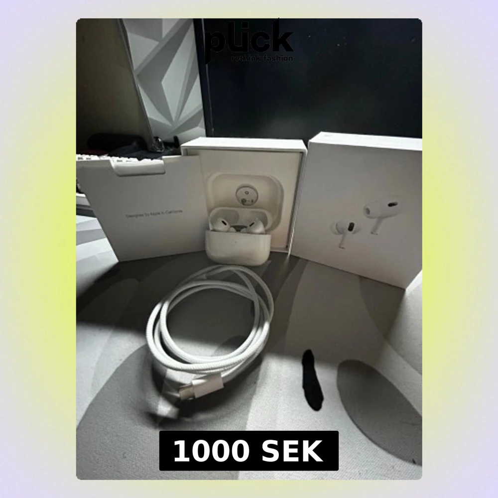 Säljer ett par AirPods Pro 2 i mycket fint skick, komplett med originalkartong och USB-C laddningskabel. Hörlurarna och laddningsfodralet är rena och utan synligt slitage. Perfekt för dig som vill ha aktiv brusreducering och hög ljudkvalitet.