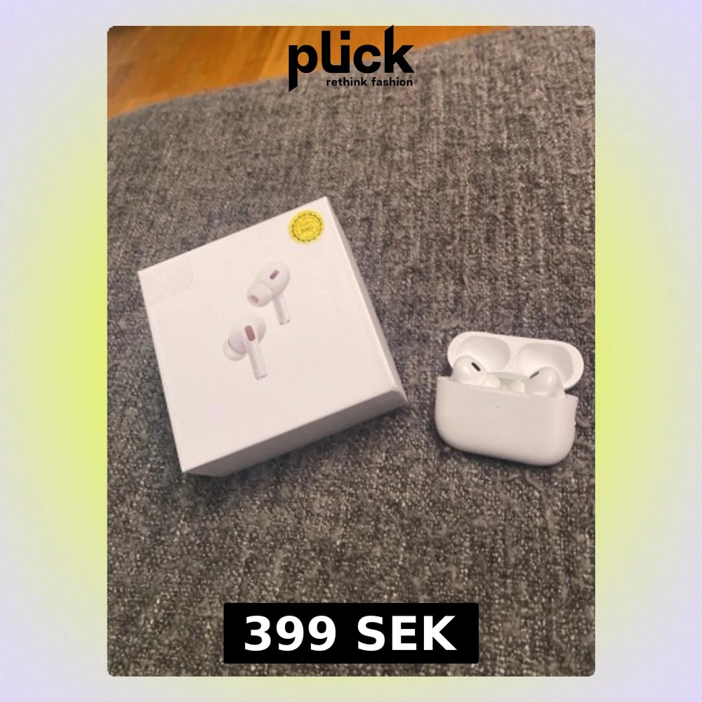 Säljer ett par Apple AirPods Pro med laddningsetui och originalförpackning. Hörlurarna är i fint skick utan synliga repor eller skador. Perfekt för trådlös musik och samtal med aktiv brusreducering. Levereras med box, redo att användas direkt.