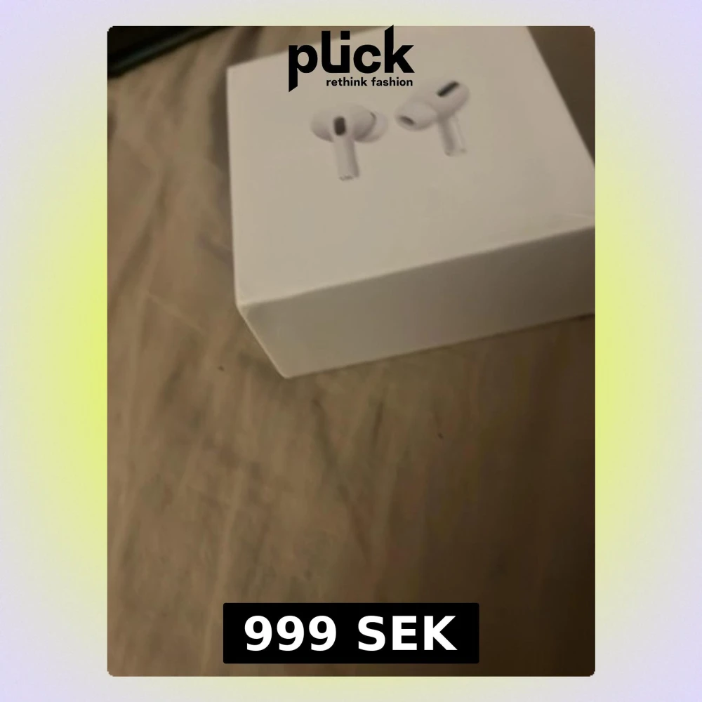 Säljer ett par Apple AirPods Pro i originalförpackning. Allt tillbehör medföljer: laddningsetui, laddkabel och extra öronproppar. Produkten ser ut att vara i mycket gott skick, perfekt för dig som vill ha trådlösa hörlurar med aktiv brusreducering och hög ljudkvalitet.