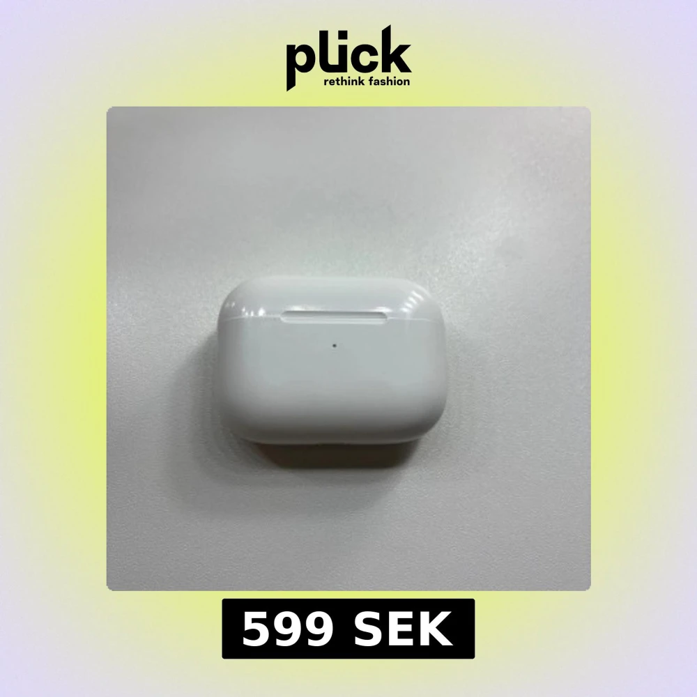 Apple AirPods Pro i originalfodral. Trådlösa hörlurar med aktiv brusreducering och laddningsetui. Skicket är bra med endast mindre ytliga repor på fodralet, inga synliga skador på hörlurarna. Perfekt för musik, samtal och träning.