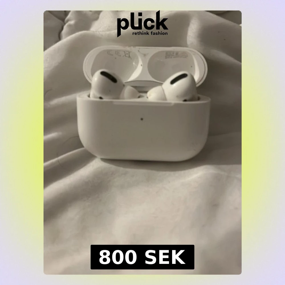 Apple AirPods Pro med laddningsetui. Trådlösa hörlurar med aktiv brusreducering och transparensläge. Skick: synligt yttre slitage på etuiet, men hörlurarna fungerar och laddar som de ska. Perfekt för musik, samtal och träning.