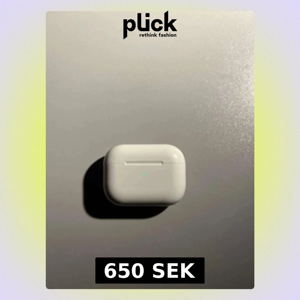 Snygga och smidiga Apple AirPods Pro i vitt med trådlös laddningsetui. Hörlurarna har en stilren, rundad design och är tillverkade i blank plast. Perfekta för musik, samtal och träning med aktiv brusreducering och enkel anslutning till iPhone.