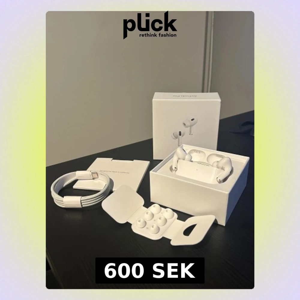 Säljer ett par AirPods Pro i nyskick med originalförpackning, extra öronkuddar och laddningskabel. Hörlurarna är trådlösa och erbjuder aktiv brusreducering för bästa ljudupplevelse. Inga synliga defekter eller slitage, allt ser komplett ut.