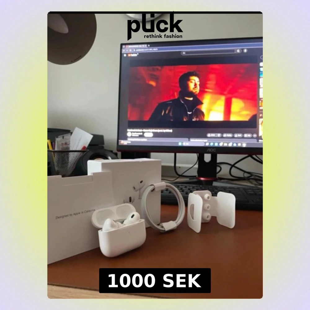 Säljer ett par Apple AirPods Pro i mycket fint skick, komplett med originalförpackning, laddkabel och extra öronproppar. Hörlurarna är trådlösa och erbjuder aktiv brusreducering. Allt ser rent och välvårdat ut, inga synliga repor eller skador.