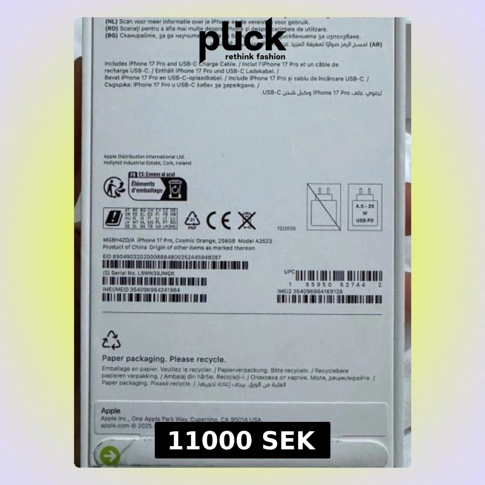 Ny iPhone 17 Pro i färgen Cosmic Orange med 256GB lagring. Levereras i originalförpackning med USB-C laddkabel. Kraftfull prestanda, avancerad kamera och elegant design. Perfekt skick, obruten förpackning.