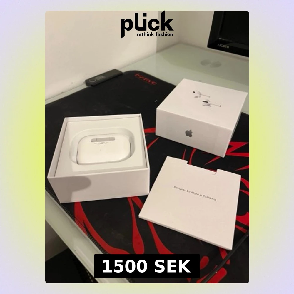 Säljer ett par Apple AirPods Pro (2nd generation) i mycket fint skick, komplett med originalförpackning och tillbehör. Trådlösa hörlurar med aktiv brusreducering och laddningsetui. Perfekt för musik, samtal och träning. Inga synliga defekter eller slitage.