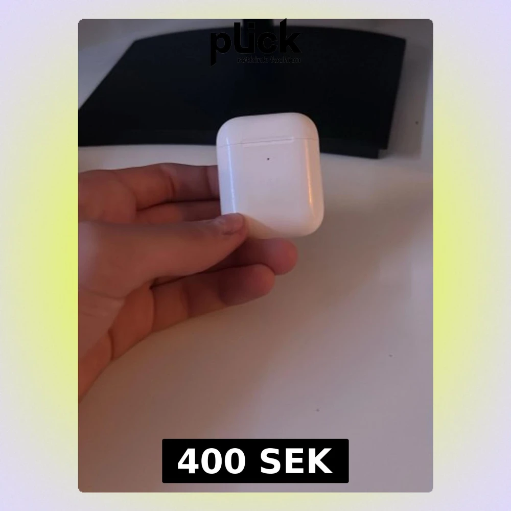 Säljer ett par stilrena vita Apple AirPods med matchande laddningsetui. De är trådlösa och har en smidig, kompakt design i blank plast som är enkel att ta med sig överallt. Perfekta för musik, poddar. Det fungerar dock inte att prata med de för att man hör inte dig genom airpodsen