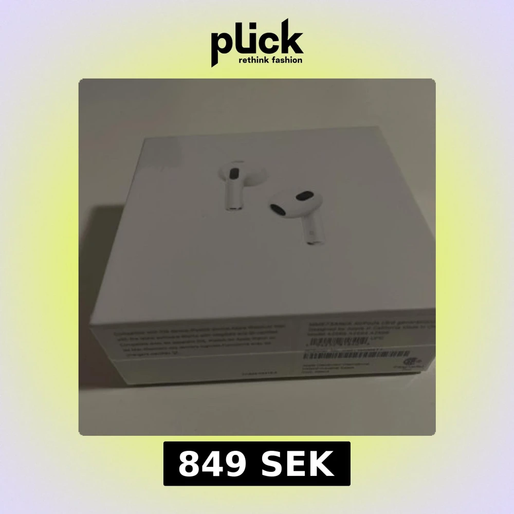 Helt nya Apple AirPods (3rd generation) med MagSafe-laddningsetui, oöppnad originalförpackning. Trådlösa hörlurar med förbättrad batteritid, rumsligt ljud och svett-/vattenresistens. Perfekt för musik, samtal och träning. Ingen synlig skada på förpackningen.