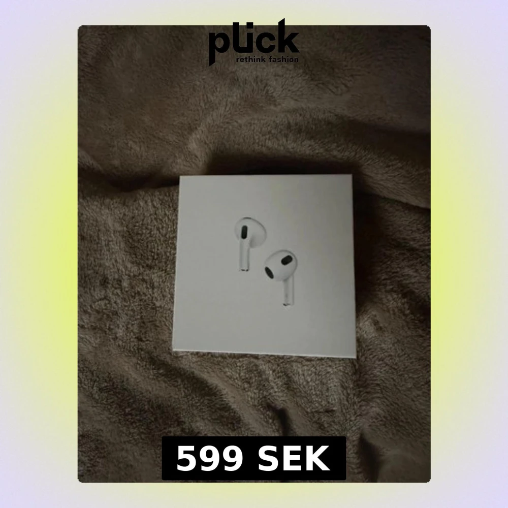 Säljer ett par Apple AirPods 3 i originalförpackning med kvitto från Elgiganten. Hörlurarna och laddningsfodralet är i mycket fint skick, utan synligt slitage. Perfekt för trådlös musik och samtal med hög ljudkvalitet. Snabb och smidig anslutning till Apple-enheter.