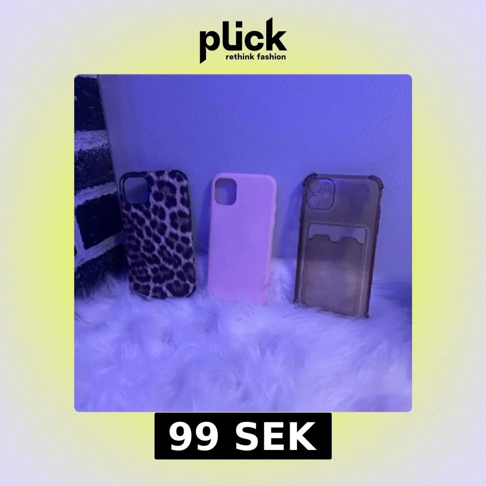 Säljer tre snygga iPhone 11 skal: ett leopardmönstrat, ett rosa silikon och ett transparent med kortfack. Alla i gott skick utan synliga sprickor.