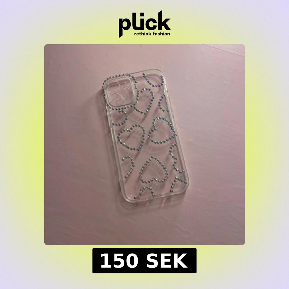 Snyggt och unikt skal till iPhone 12 mini med transparent design och hjärtan av glittrande strasstenar. Skalet är i mycket gott skick utan synligt slitage. Perfekt för dig som vill skydda din mobil och samtidigt ge den en personlig touch.