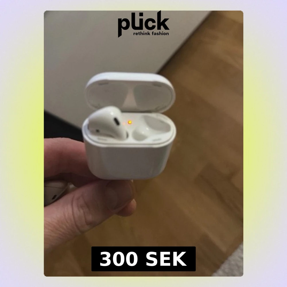 Säljer ett par Apple AirPods 2 med laddningsetui. Fungerar utmärkt och laddar som de ska, synlig indikatorlampa. Små tecken på normalt bruk, inga synliga större skador eller repor. Perfekt för trådlös musik och samtal.Höger sidan fattas