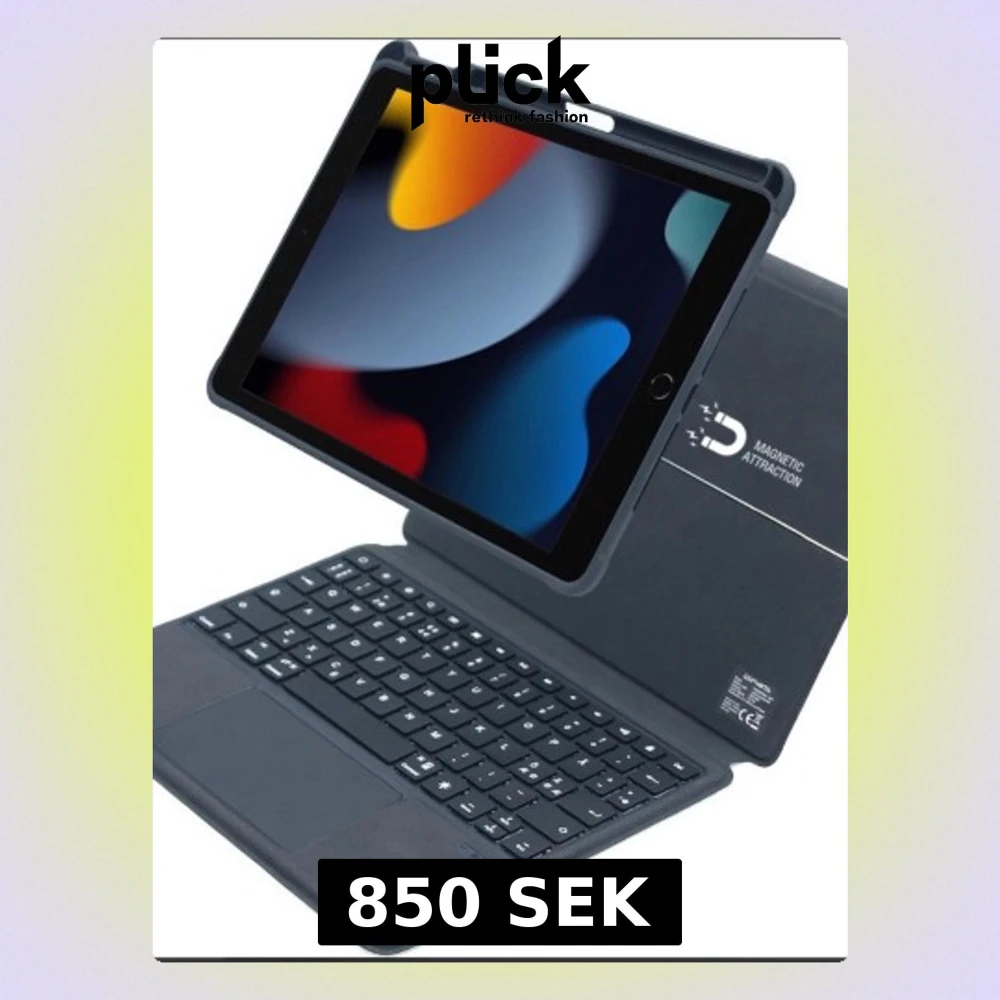Snygg Apple iPad med magnetiskt tangentbordsfodral. Fodralet har inbyggt tangentbord och touchpad. Skalet skyddar iPaden och fungerar som ställ. Allt i mycket fint skick utan synligt slitage. Passar utmärkt för både arbete och studier.