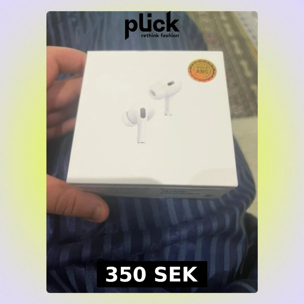 Säljer ett par vita Apple AirPods Pro med aktiv brusreducering. Snygg och kompakt design i plast, levereras i originalförpackning. Perfekta för musik, poddar och samtal med grymt ljud och smidig anslutning till iPhone.