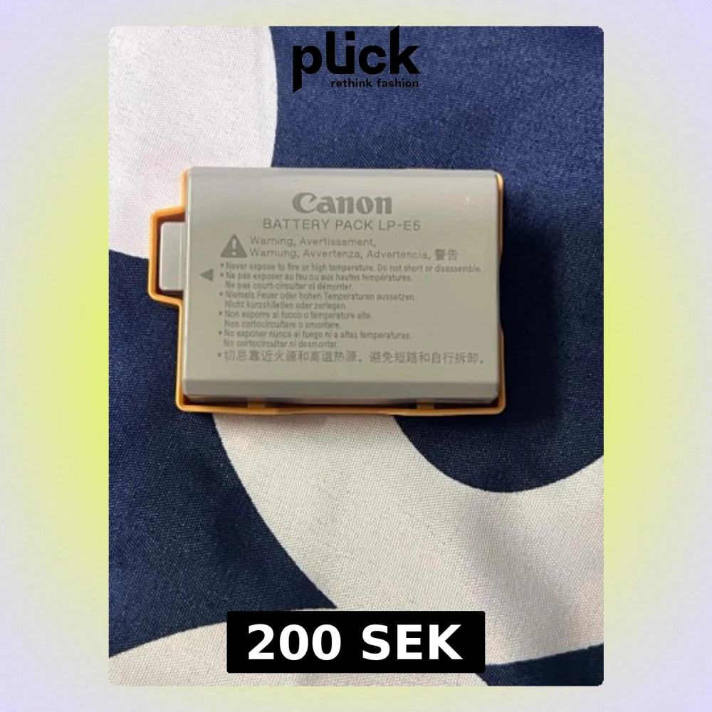 Canon LP-E5 original batteripack, kompatibel med flera Canon systemkameror. Batteriet ser ut att vara i gott skick utan synliga skador eller slitage. Perfekt som extra eller ersättningsbatteri för din kamera.