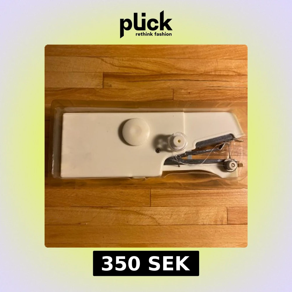 Praktisk handhållen symaskin för snabba lagningar och fållningar. Perfekt för att laga kläder, korta byxor och sy gardiner. Enkel att använda, drivs av 4 AA-batterier (ej inkluderade). Inkluderar trådrulle och tillbehör. Oanvänd i originalförpackning.