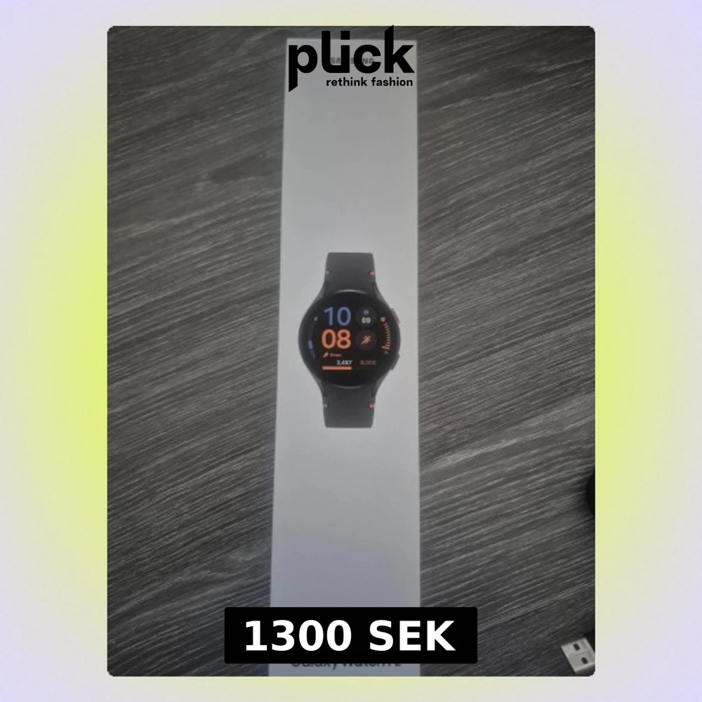 Samsung Galaxy Watch FE i nyskick, komplett med originalförpackning och laddare. Modern design med svart armband, tydlig AMOLED-skärm och många smarta funktioner för hälsa och träning. Perfekt för dig som vill ha en pålitlig och snygg smartklocka.