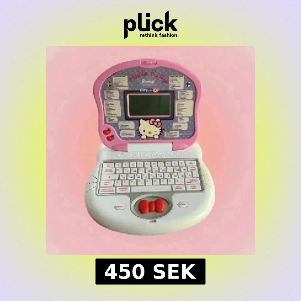 Söt Hello Kitty leksaksdator från Clementoni. Datorn har ett tangentbord med svenska och finska bokstäver och siffror. Pris då den ej säljs längre, Perfekt för dig som gillar kawaii, bokstäver, siffror och språk spel. Kan även användas som dekoration i rummet.
