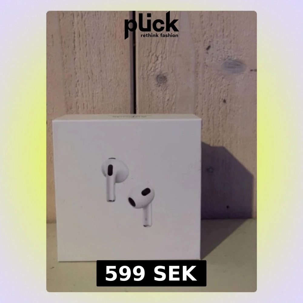 Säljer ett par Apple AirPods (3rd generation) i mycket fint skick, komplett med originalförpackning och laddningsetui. Trådlösa hörlurar med MagSafe-kompatibilitet, utmärkt batteritid och smidig anslutning till iPhone, iPad och Mac. Inga synliga defekter eller slitage.